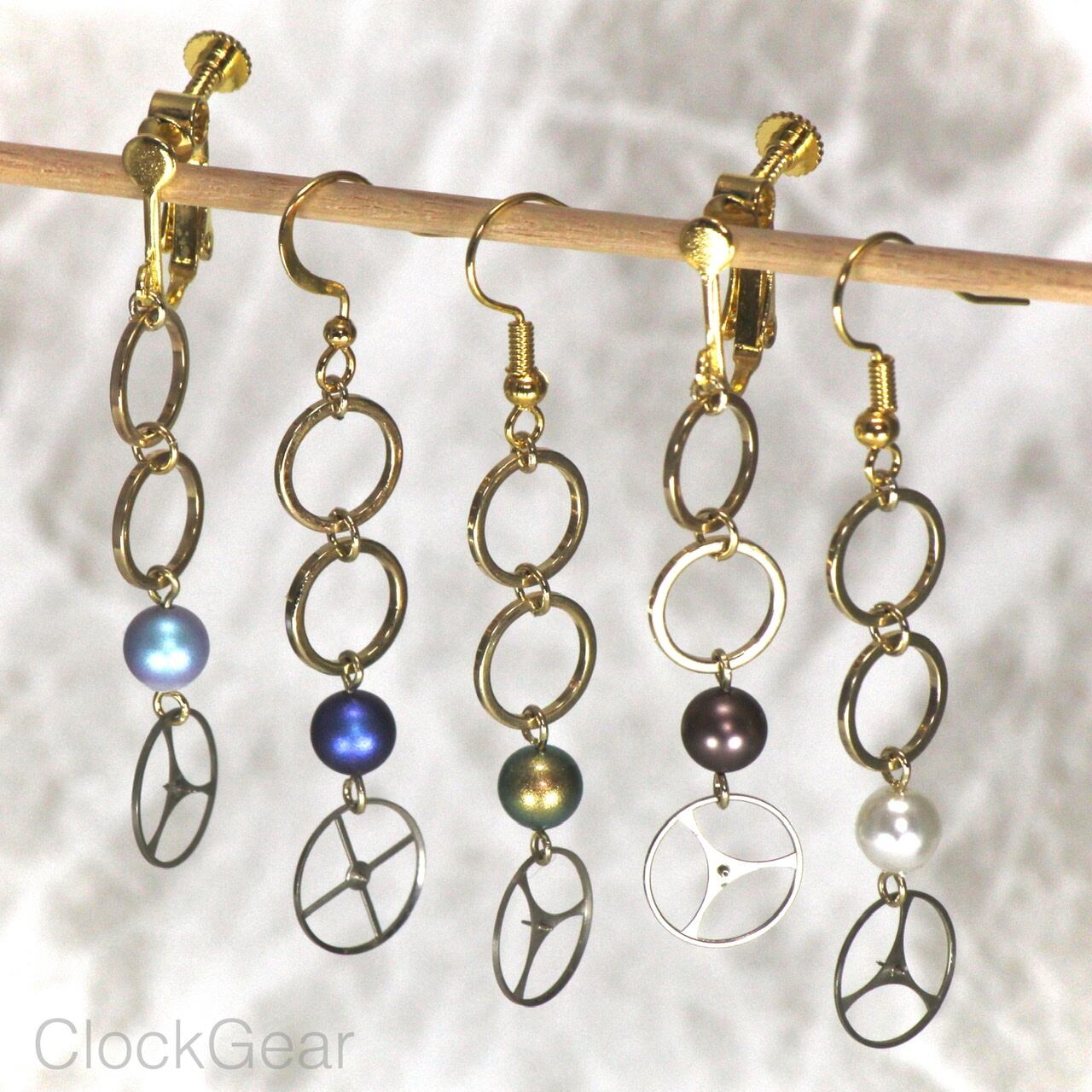 歯車とまるいフレームを組み合わせたピアス/イヤリングです。