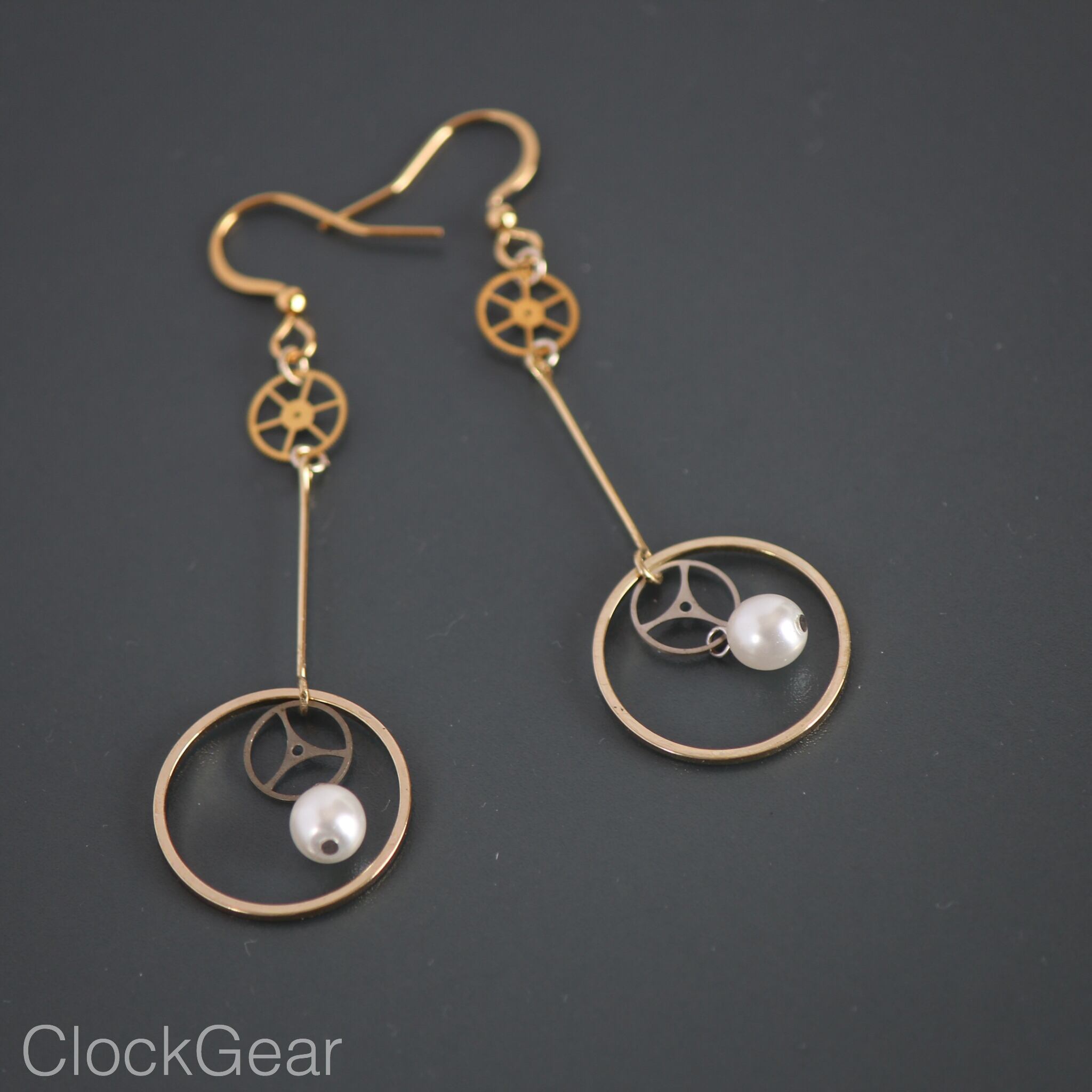 歯車とまるいフレームを組み合わせたピアス/イヤリングです。