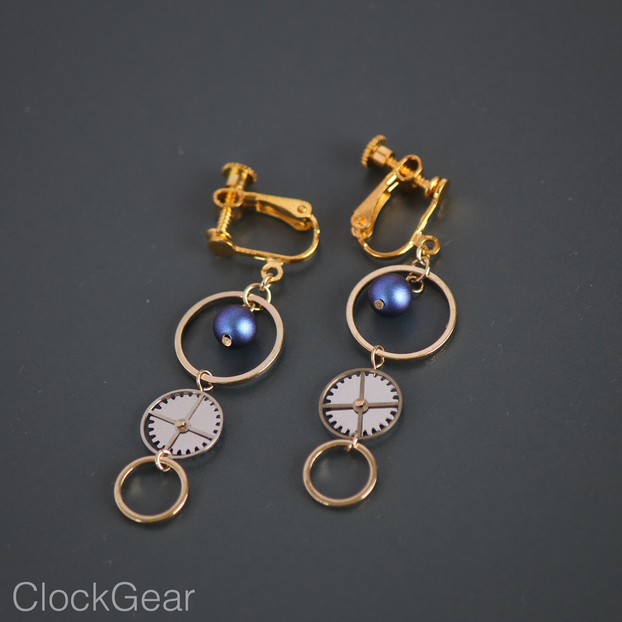 ギアラウンドピアス/イヤリング02【ネイビー】