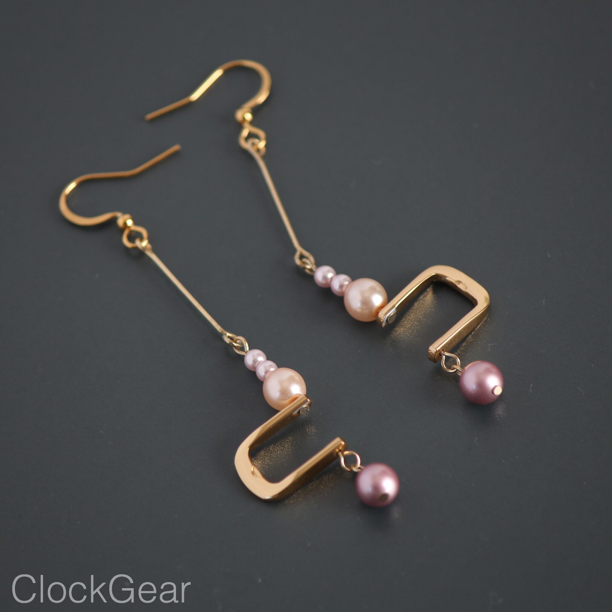 「腕時計の金具「美錠(ビジョウ)」とパールを組み合わせたピアス/イヤリング」です。